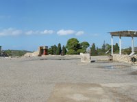 The corridor at the south entrance with the copy of the fresco of the Prince of Lilies