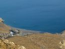 Driving from Vassiliki to Tripiti over the gorge of Agios Savvas we see in the distance the beach and the narrow passage through the gorge of Tripiti.